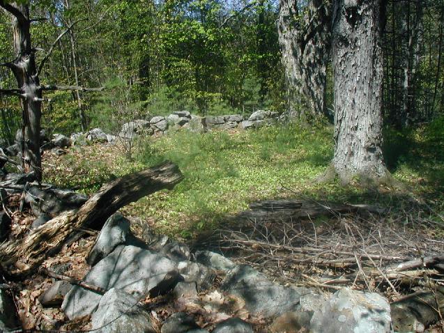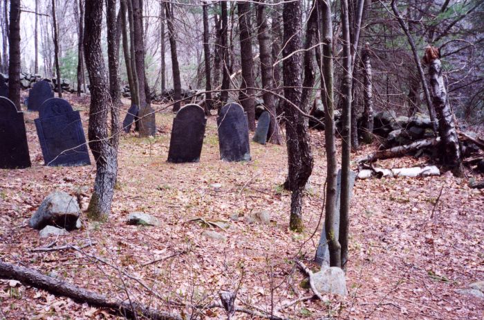 Shaft (West) Blair (South) Brother Blair (North) Hugh Blair & Family ________________________________ Stone posts remain showing where once chains separated lots, it is clearly evident that there were many more stones here at one time, but this yard had been apparently used as a pasture when Mr. & Mrs. Gregg walled it off, and cut off the brush. (See Gregg MS by Winifred L. Holman, Lexington, MA, copy at NEHG Society) ________________________________ The following five removals from the "Smith Yard" to the new cemetery in New Boston, now known as Meetinghouse Hill Cemetery, are recorded in the report of Edmund P. Fox, Supt. of the Cemetery, for the year ending February 25, 1888: OTHER REMOVALS Nov. 18, 1888 Dea. Thomas Smith, from the Smith Yard to lot #73, 3d survey. Mrs. Esther Smith, from the Smith Yard to lot #73, 3d survey. George Smith, from the Smith Yard to lot #73, 3d survey. John McCurdy, from the Smith Yard to lot #73, 3d survey. Mrs. Clarinda McCurdy, from the Smith Yard to lot #73, 3d survey. The report by the Trustees and Superintendent of the New Boston Cemetery also had this note: "We hope that the work of discontinuing the old farm burying-ground and removing the remains of friends from such places to this cemetery will continue as it has done in the past two years." ________________________________Thomas is the son of Deac. John Smith mentioned above. His and wife Esther Poland's