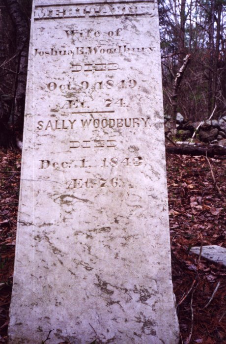 Mehetable / wife of / Joshua E. Woodbury / died / Oct. 9, 1849 Aet. 74 / Sally Woodbury / died / Dec. 1, 1843 Aet. 76