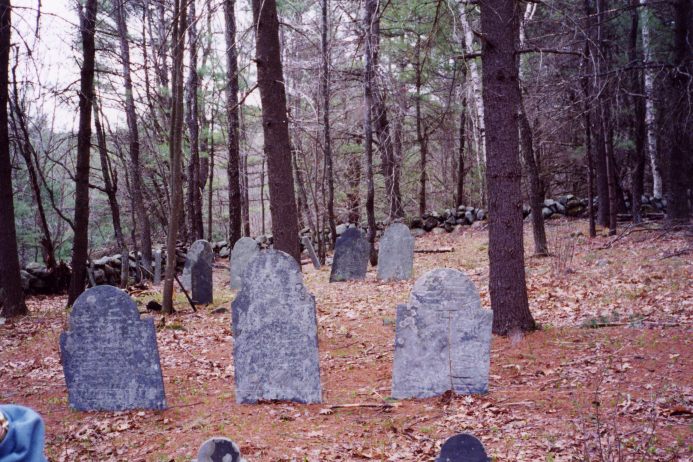 Shaft (West) Blair (South) Brother Blair (North) Hugh Blair & Family ________________________________ Stone posts remain showing where once chains separated lots, it is clearly evident that there were many more stones here at one time, but this yard had been apparently used as a pasture when Mr. & Mrs. Gregg walled it off, and cut off the brush. (See Gregg MS by Winifred L. Holman, Lexington, MA, copy at NEHG Society) ________________________________ The following five removals from the "Smith Yard" to the new cemetery in New Boston, now known as Meetinghouse Hill Cemetery, are recorded in the report of Edmund P. Fox, Supt. of the Cemetery, for the year ending February 25, 1888: OTHER REMOVALS Nov. 18, 1888 Dea. Thomas Smith, from the Smith Yard to lot #73, 3d survey. Mrs. Esther Smith, from the Smith Yard to lot #73, 3d survey. George Smith, from the Smith Yard to lot #73, 3d survey. John McCurdy, from the Smith Yard to lot #73, 3d survey. Mrs. Clarinda McCurdy, from the Smith Yard to lot #73, 3d survey. The report by the Trustees and Superintendent of the New Boston Cemetery also had this note: "We hope that the work of discontinuing the old farm burying-ground and removing the remains of friends from such places to this cemetery will continue as it has done in the past two years." ________________________________Thomas is the son of Deac. John Smith mentioned above. His and wife Esther Poland's